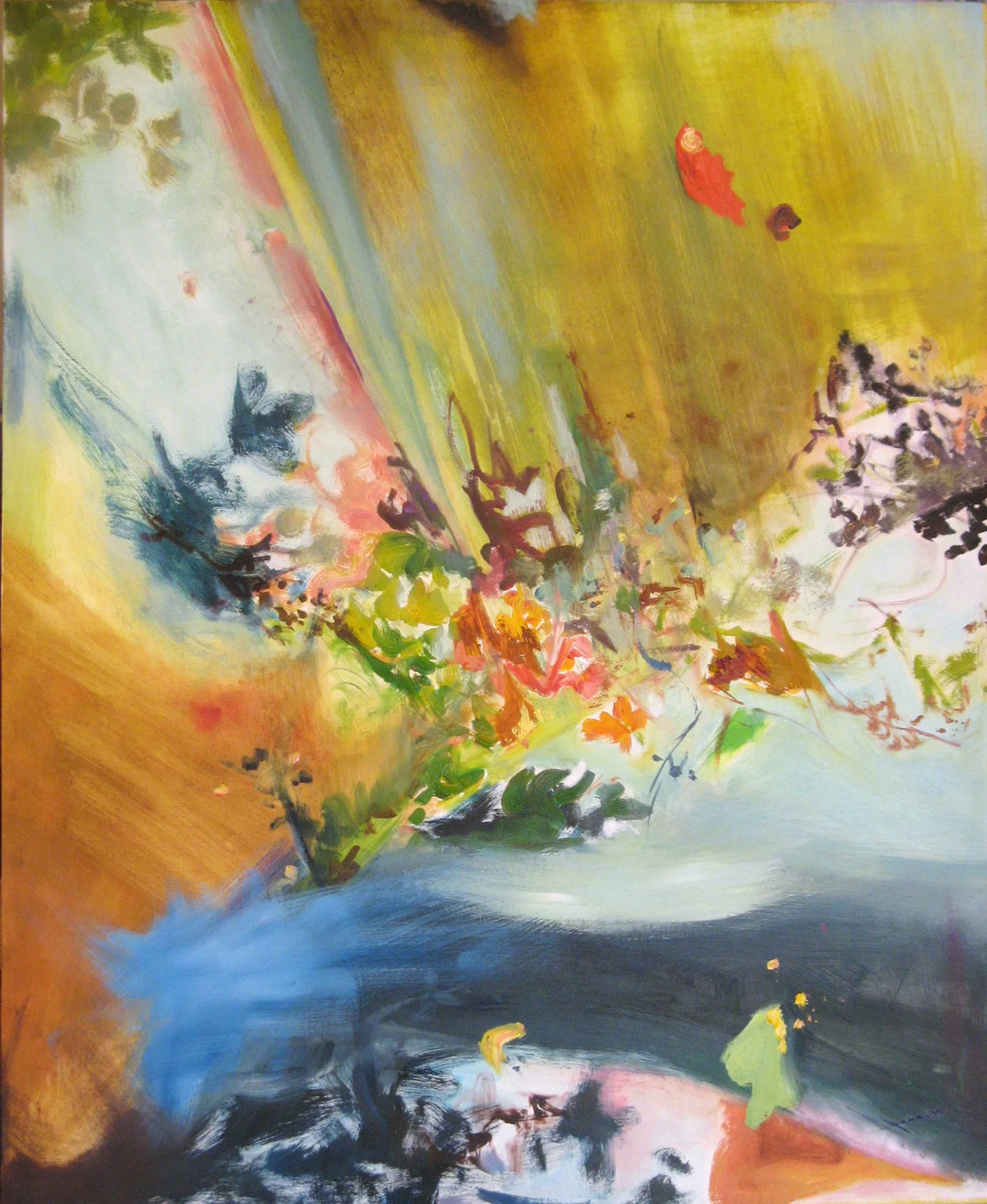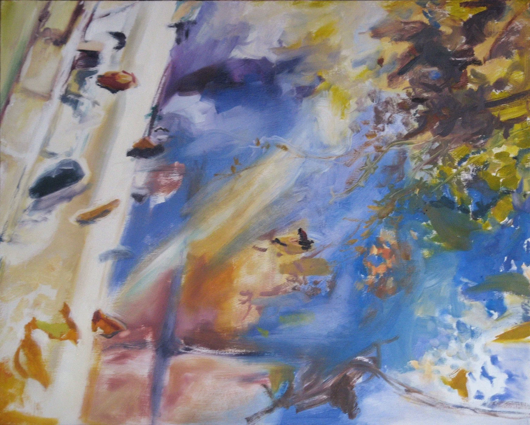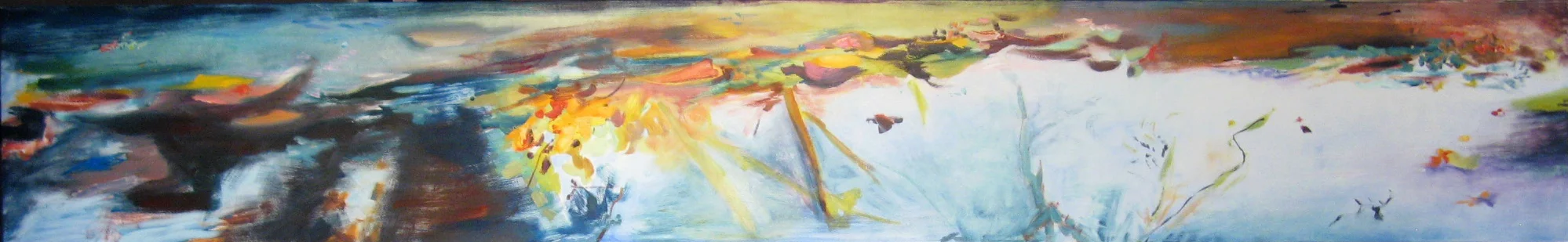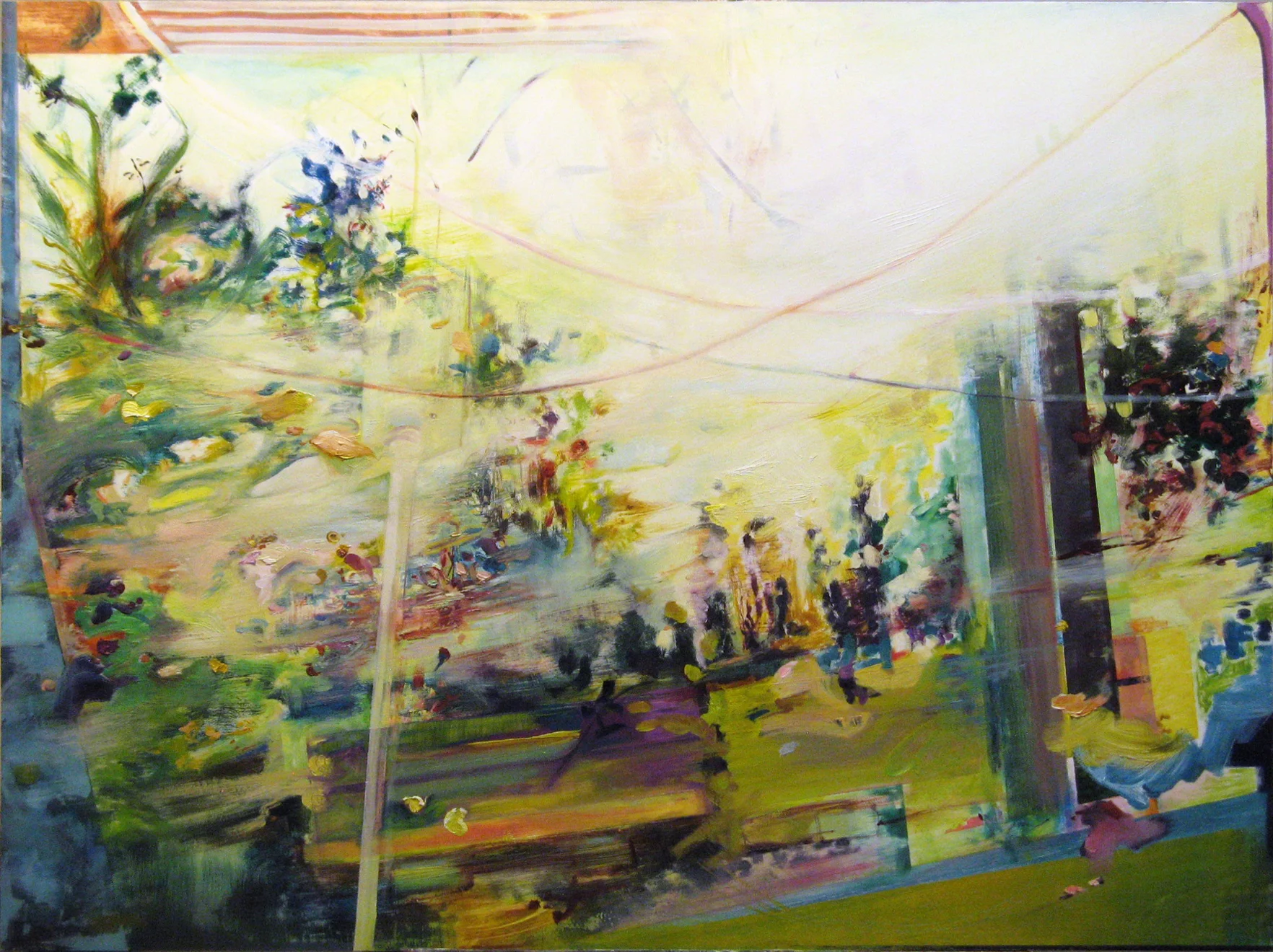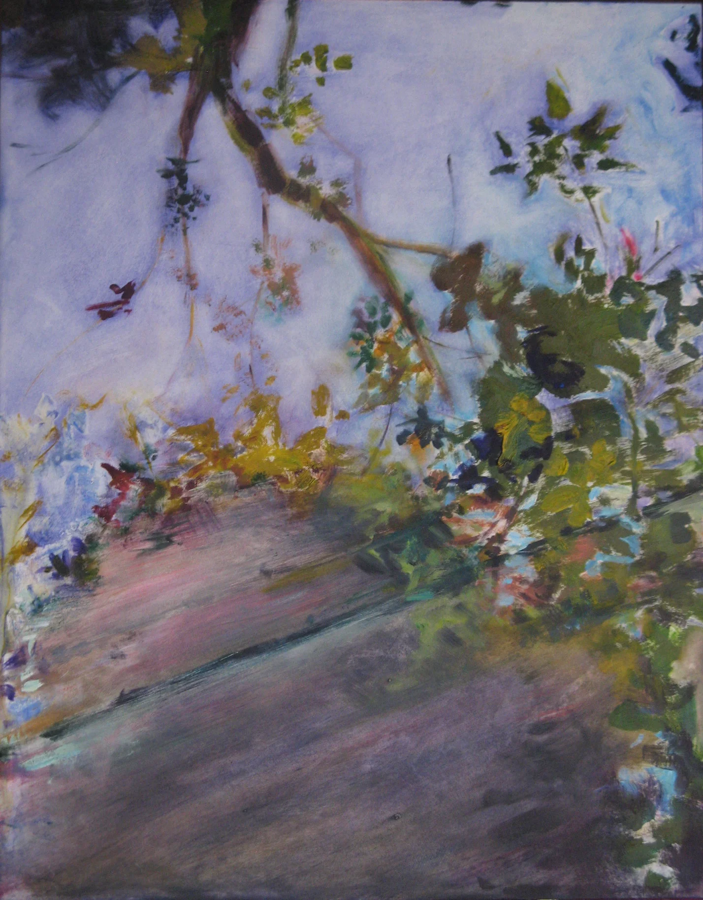 “Abstractions rooted in landscape, or perhaps landscapes tied to abstraction, these paintings are derived from photographs capturing the pools of water that intermittently collect on the sidewalks near my Edmonton home. I imagine the puddle as a microcosm of the surrounding urban landscape – encompassing earth, trees, sky, architecture, and even litter. Embracing ambiguity and a little quirkiness, the naturalistic rendering of the landscape becomes secondary.”